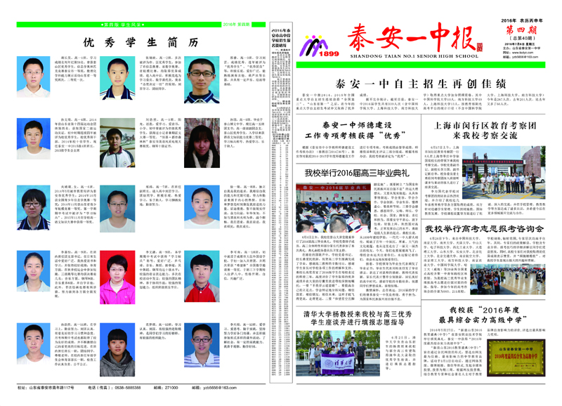 泰安一中校报(2016年第四期)