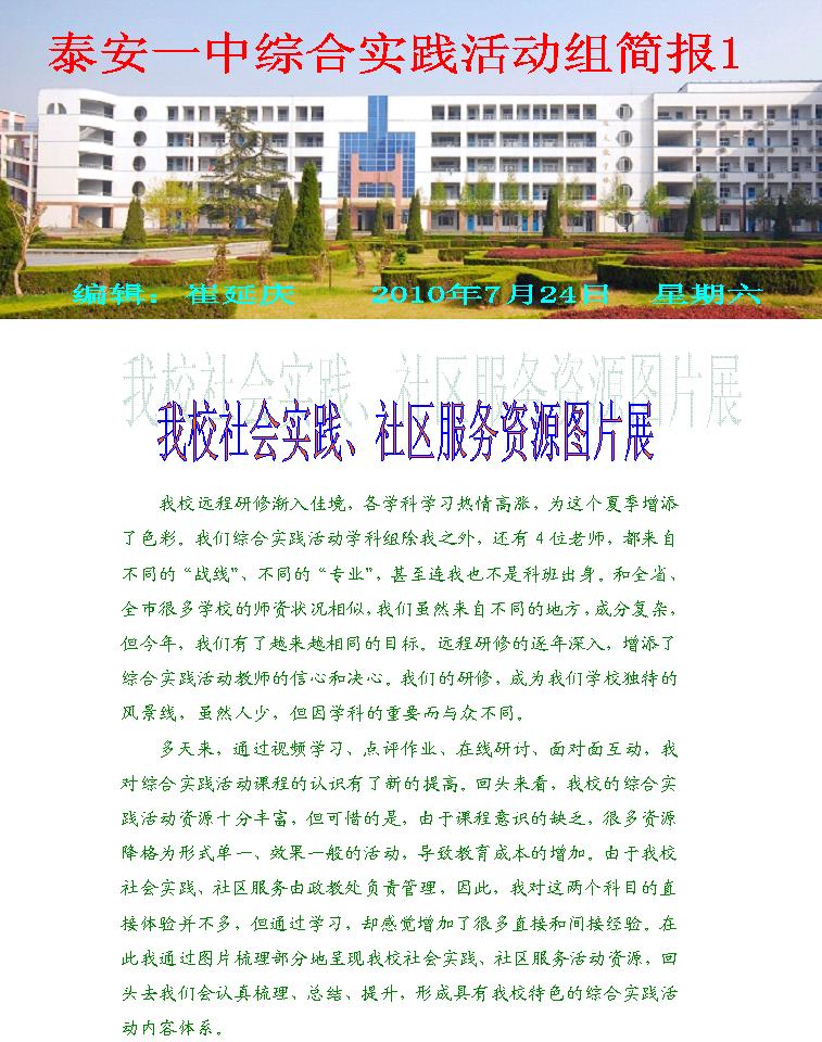 泰安一中综合实践活动学科课程简报第一期