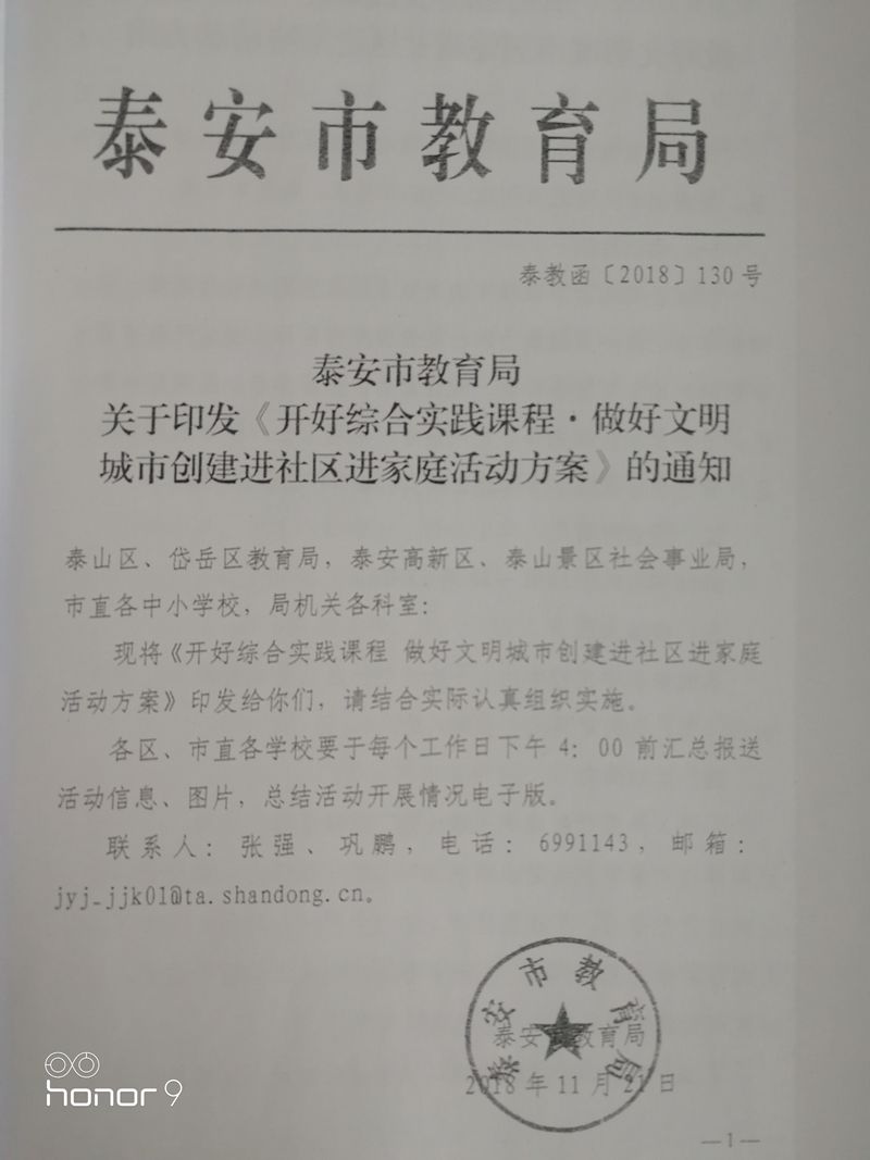 市教育局开展综合实践、文明创建进社区进家庭的通知